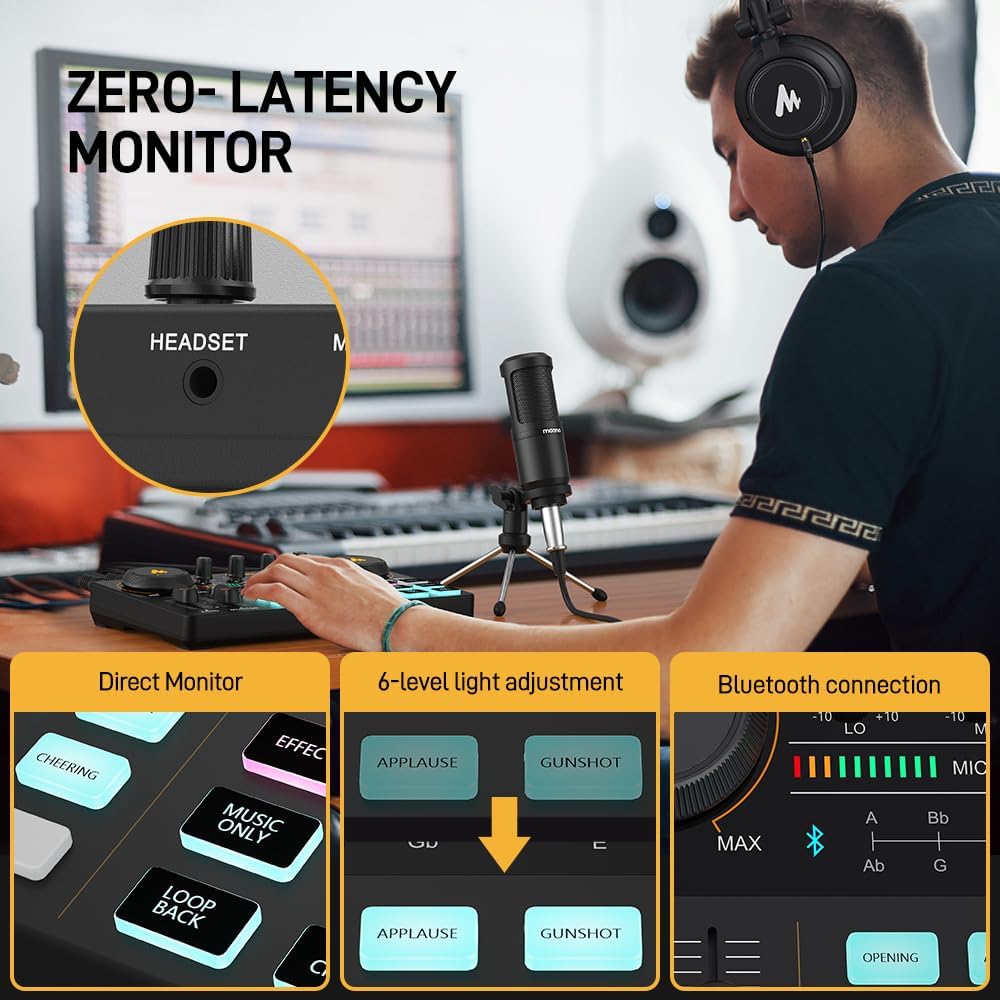 MAONO Podcast Equipment Bundle Audio mixer All-in-One Podcast Production Studio with 3.5mm Microphone for Live Streaming, Podcast Recording, PC, Smartphone, DJ MaonoCaster Lite (AU-AM200-S1)