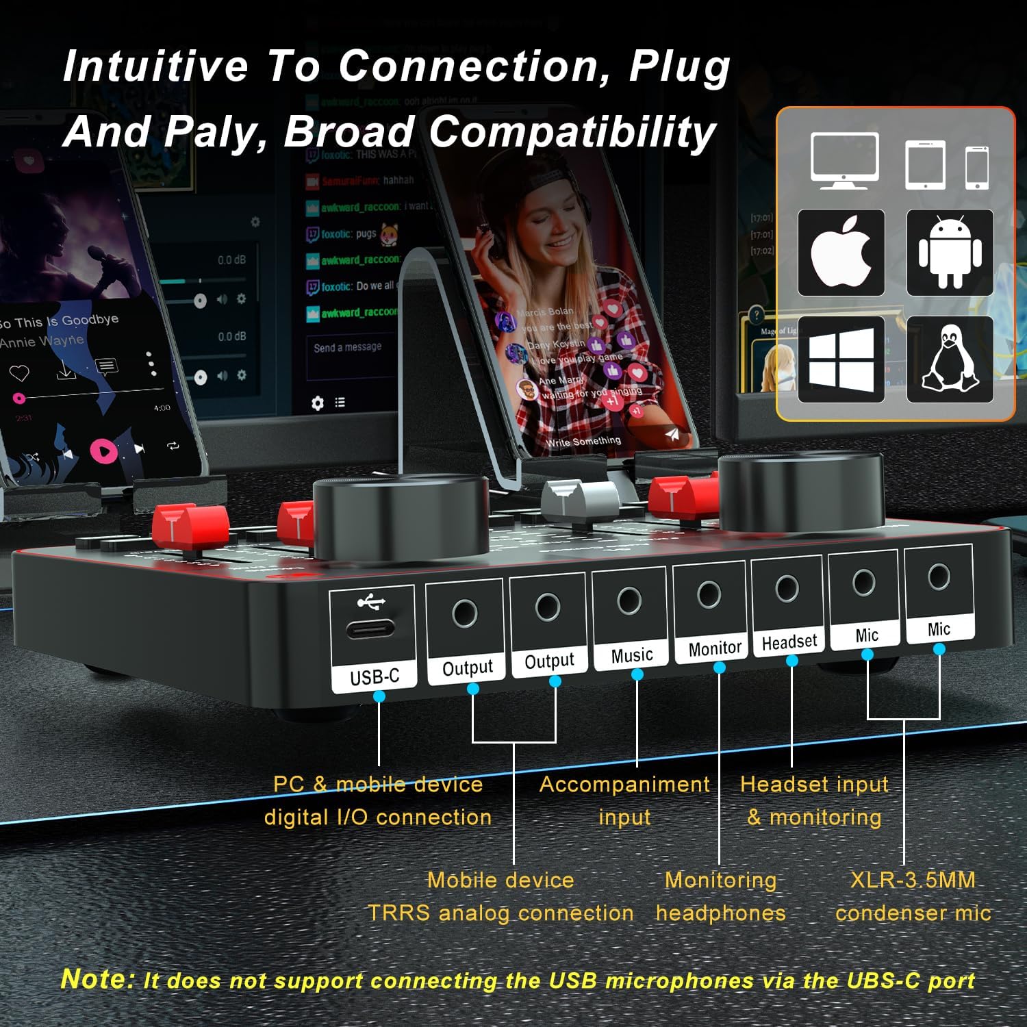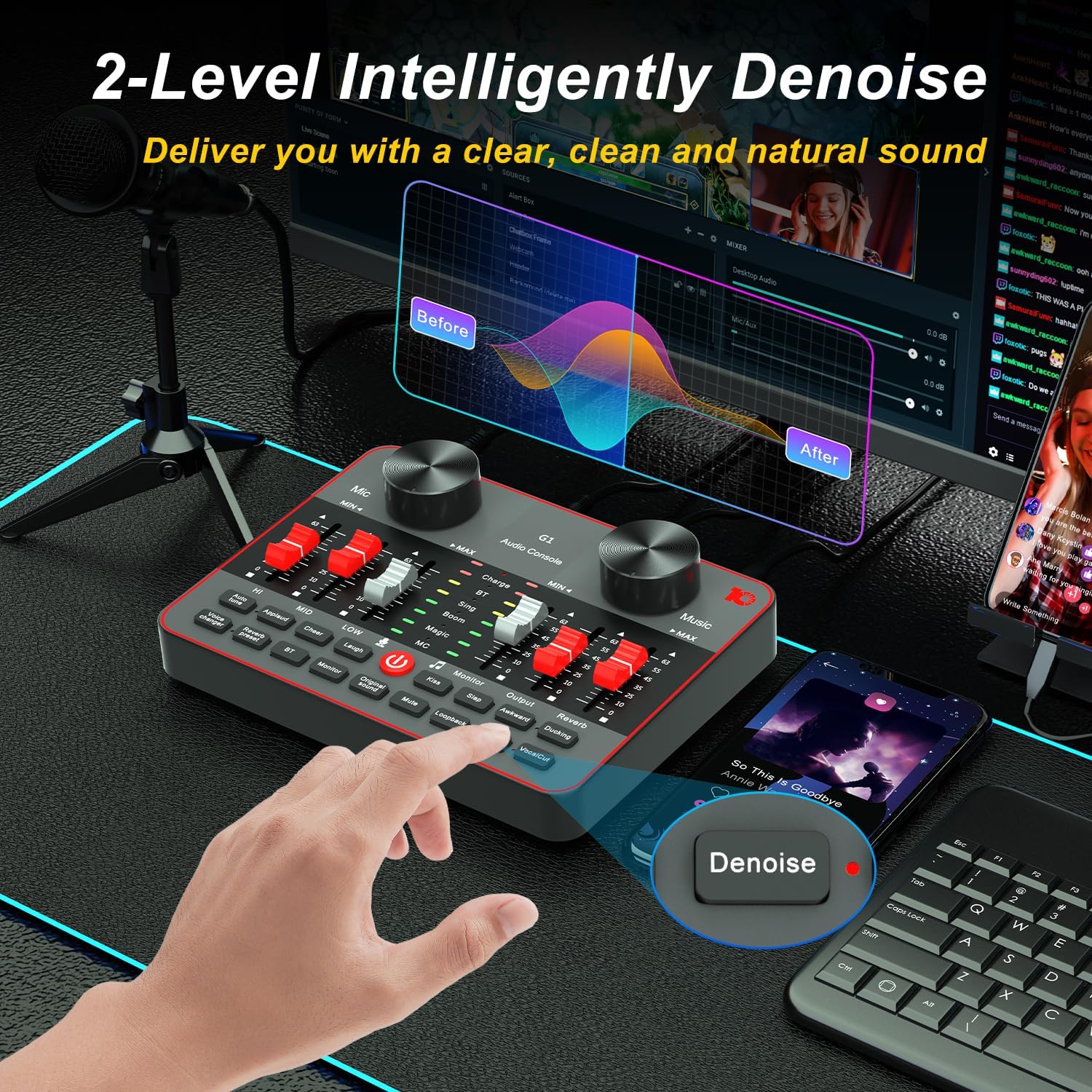 Podcast Equipment Bundle for 2 Mic Tiktok Video Content Creator Kit, Audio Interface DJ Mixer Sound Card/Board Condenser Microphone for Studio Smartphone/PC/Laptop Broadcast Recording/Live Stream